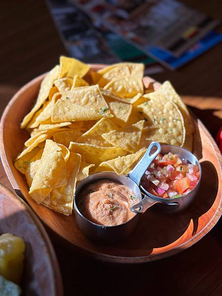 中南美洲墨西哥的經典美食,絕對不能少了玉米片~!一般玉米片都是配上莎莎醬,這裡多了一碗鹹豆泥,鹹豆泥吃起來很像是鵝肝醬那種感覺,配上莎莎醬一口吃下去,超級~好吃🤤🤤
